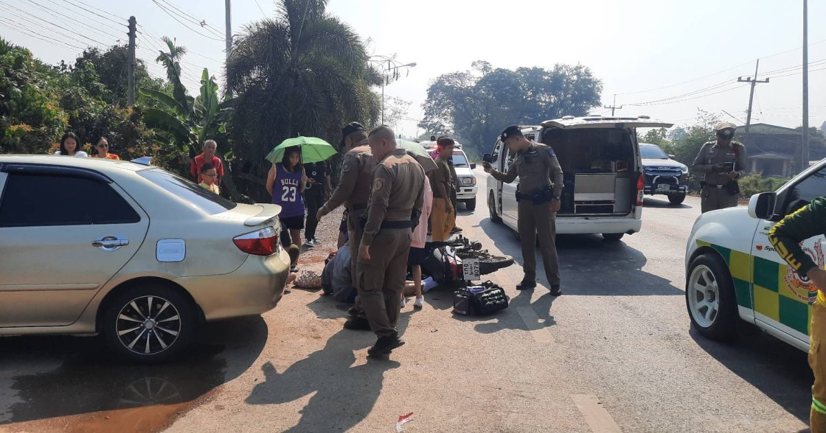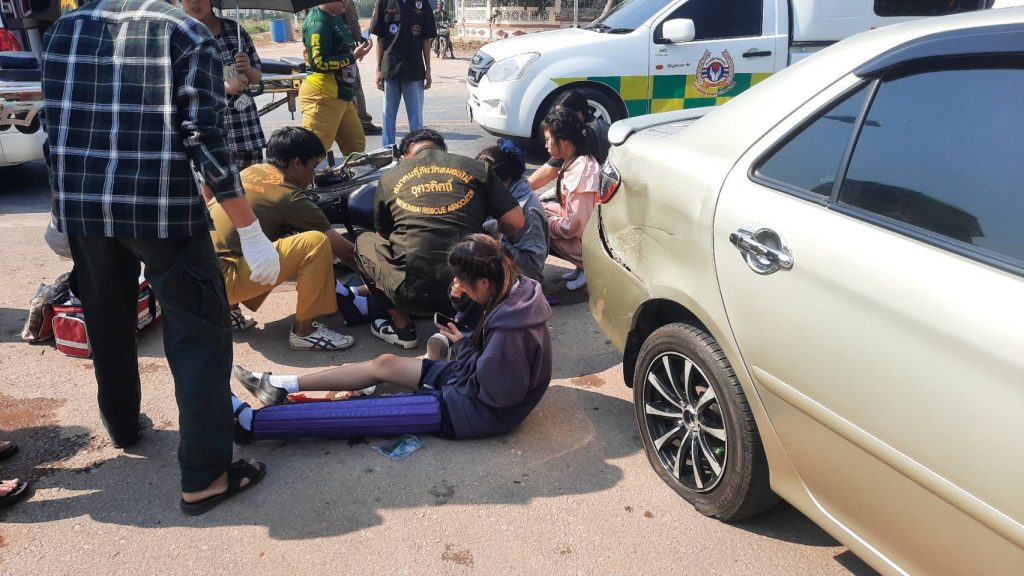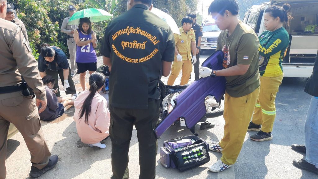 ม.3 ต.วังกะพี้ อ.เมืองจ.อุตรดิตถ์ รับแจ้ง จากกู้ภัยศูนย์นเรนทรมีเหตุ ว.40 ระหว่างรถยนต์เก๋ง กับ จยย. บริเวณหน้าวัดท่าทอง มีผู้ได้รับบาดเจ็บ 3 ราย กู้ภัยหมอนไม้นำผู้ได้รับบาดเจ็บ ส่ง รพ. แจ้งวังกะพี้ 20 / 30 สายตรวจรถยนต์ ผู้ช่วย 30 ออก ว.4 ตรวจสอบ พนักงานสอบสวนผู้รับผิดชอบ ร.ต.อ.พิเชฎฐ์ ชาตะโชติ